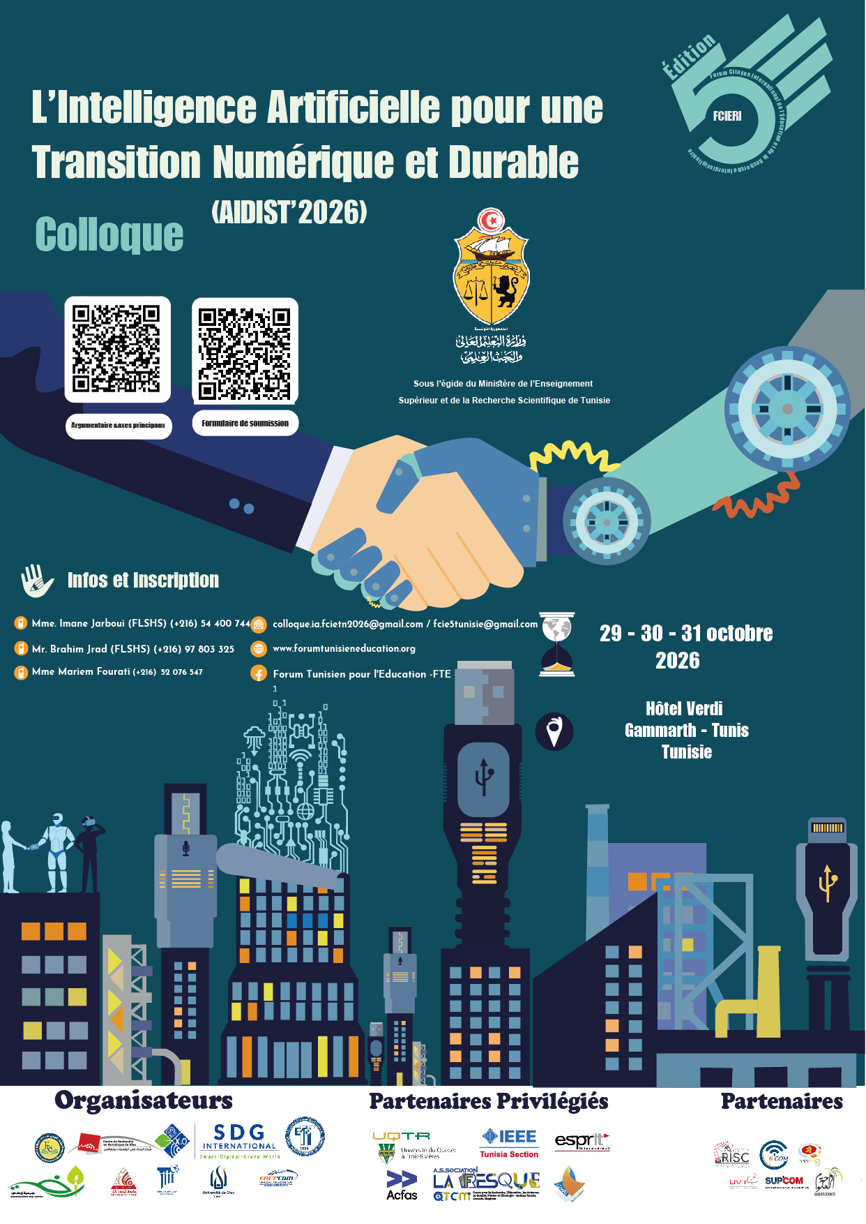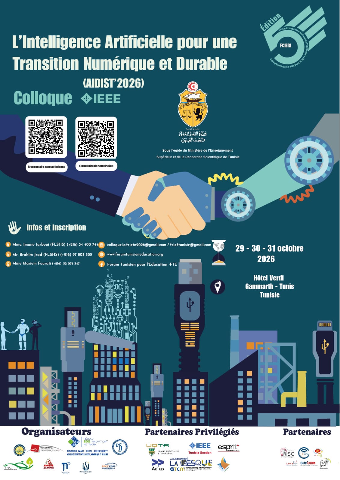 - Colloque 1 :L’Intelligence Artificielle pour une Transition Numérique et Durable – AIDIST’2026