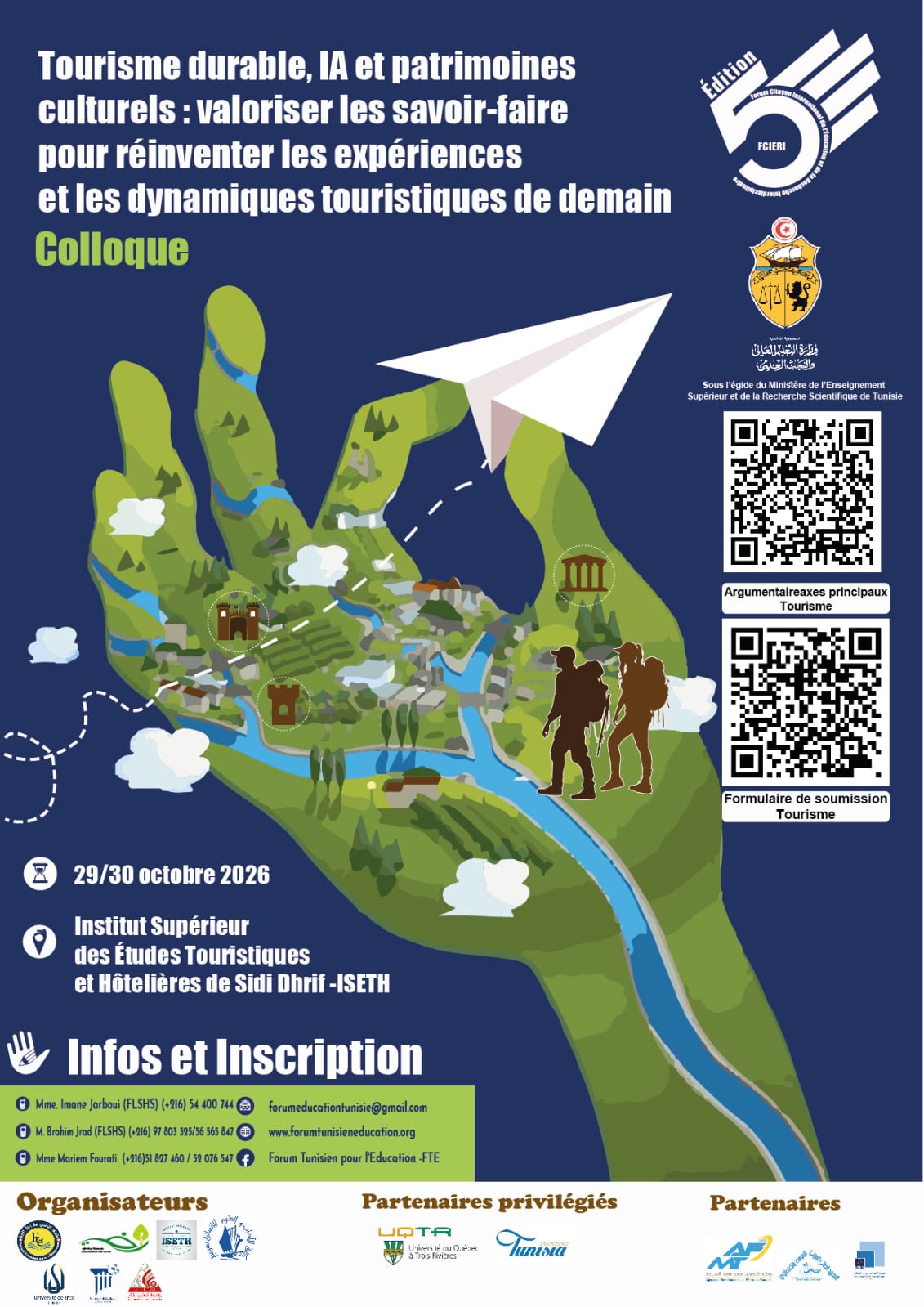 - Colloque 4 :Tourisme Durable, IA et Patrimoines Culturels : valoriser les savoir-faire pour réinventer les expériences et les dynamiques touristiques de demain