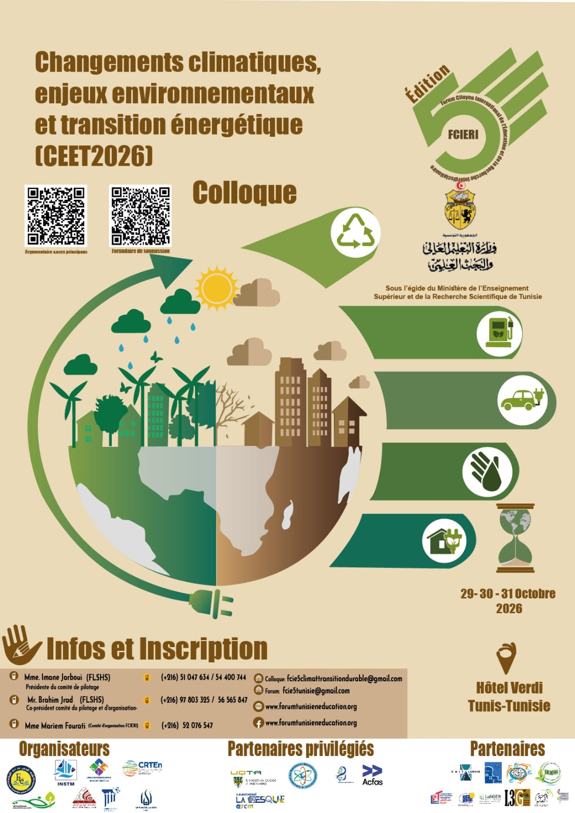 - Colloque 2 :Changements climatiques, enjeux environnementaux et transition énergétique – CEET’2026